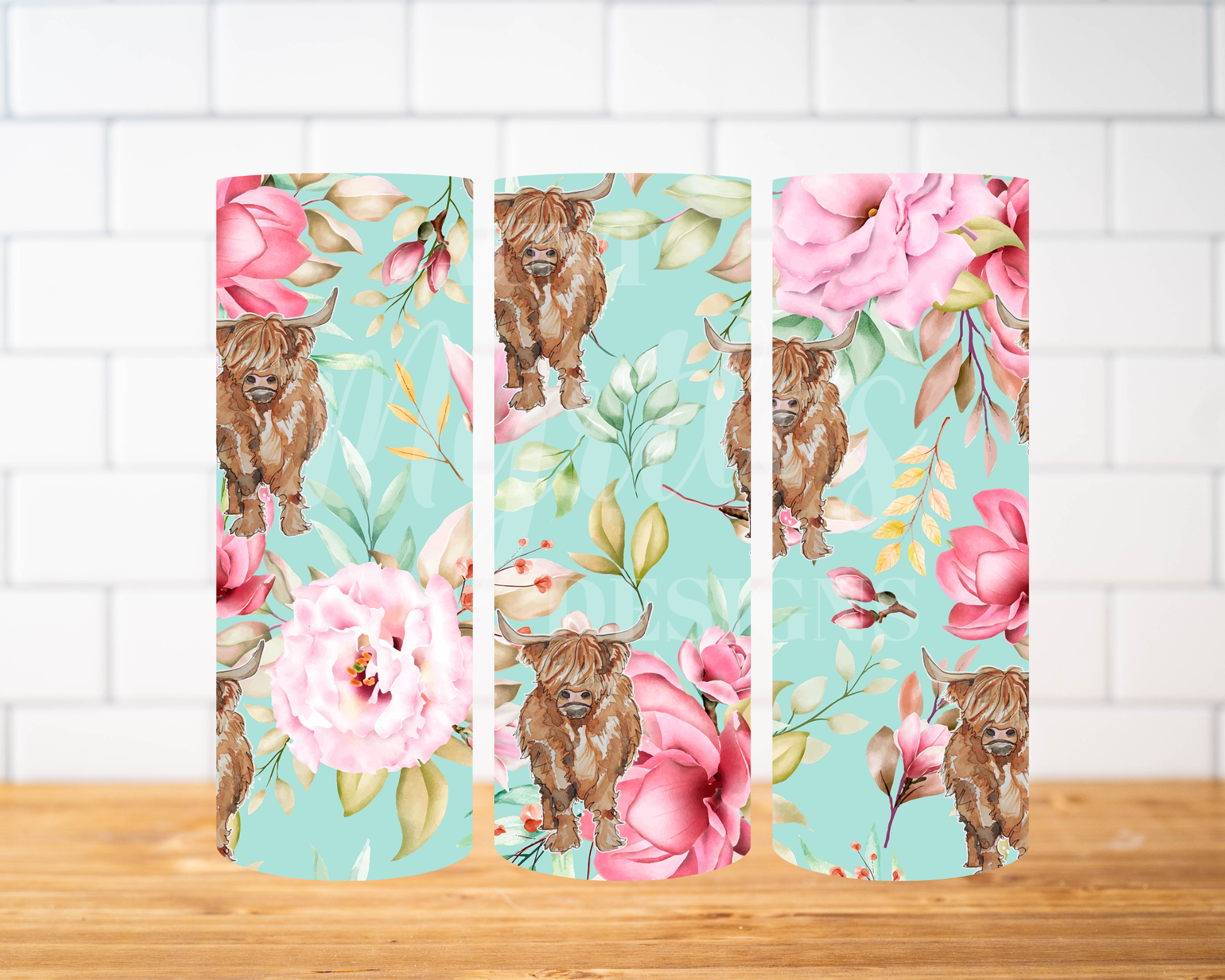 RTS 00226 - Highland cows with flowers - 20oz skinny tumbler