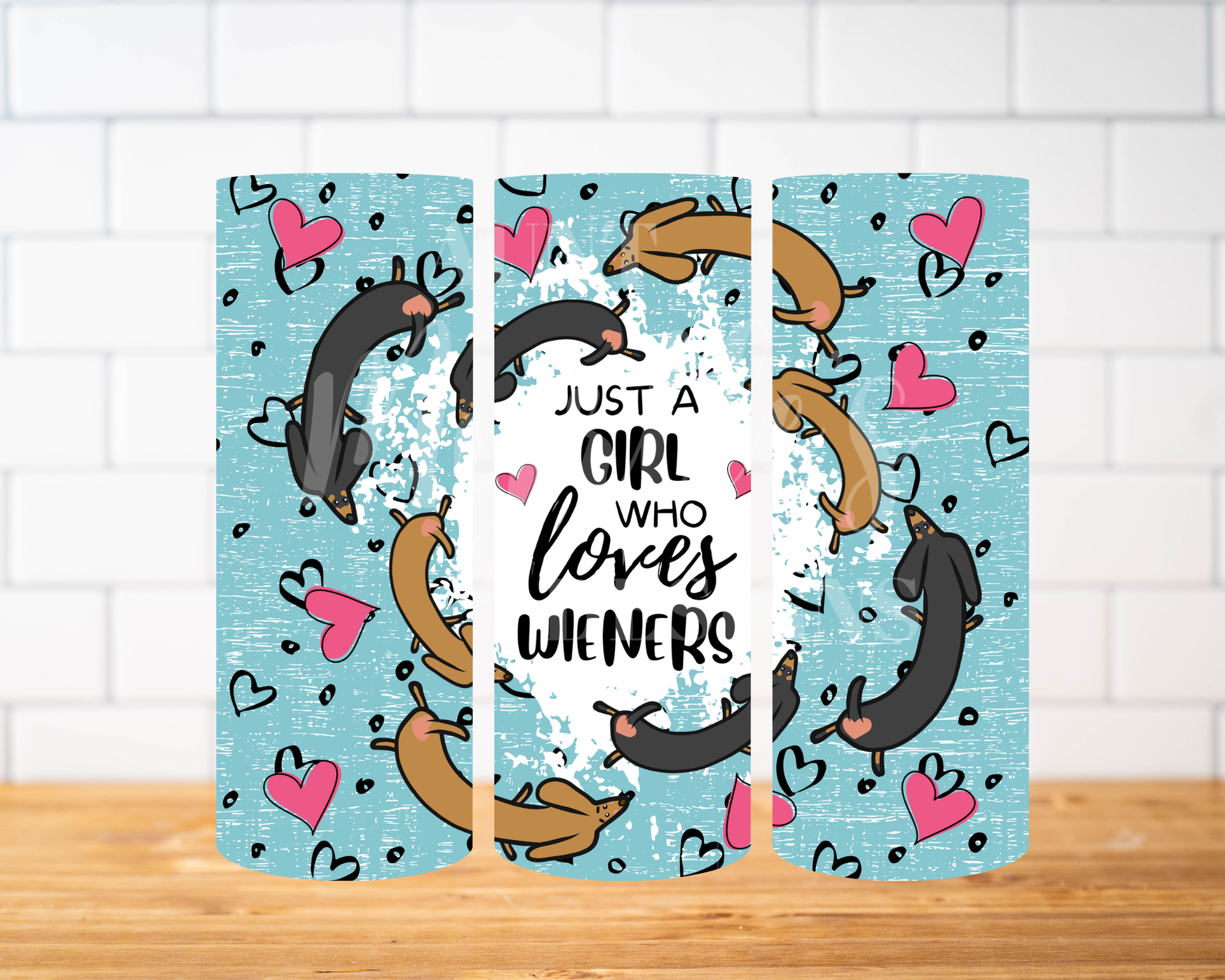 Show off your love for those long, lovable pups with our "Just A Girl Who Loves Wieners" 20oz Tumbler – the cutest way to keep your drinks just right!