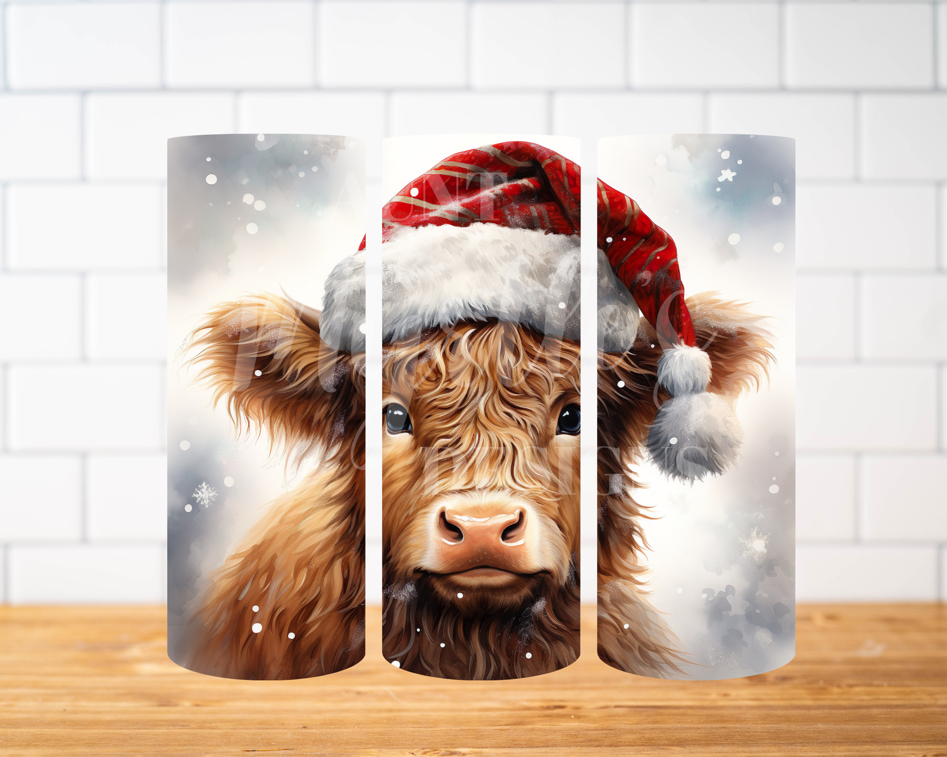 RTS 00729 - Christmas highland - 20oz skinny tumbler